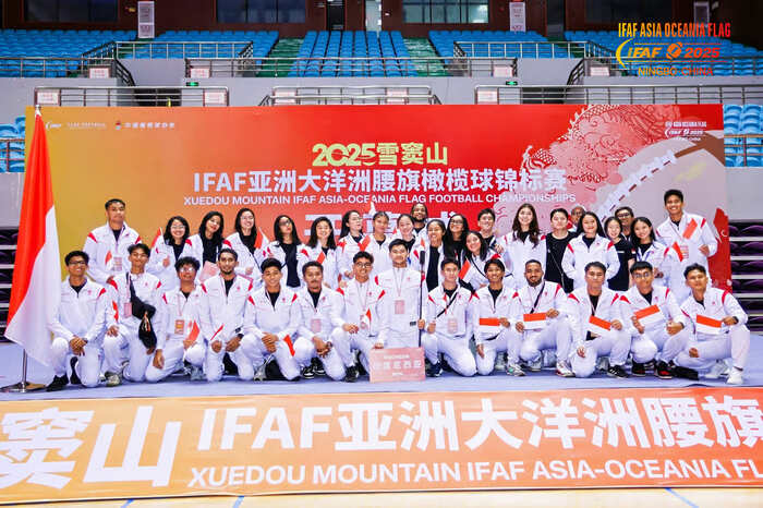 Ningbo, Cina, 26 Oktober 2025 — Tim Nasional Flag Football Indonesia berhasil menorehkan pencapaian membanggakan di kancah internasional. Dalam ajang International Federation of American Football Asia–Oceania Flag Football Championship 2025 (IFAF AOFFC 2025) yang digelar di Ningbo, Cina, tim putra dan putri Indonesia berhasil menempati peringkat lima besar Asia. Capaian ini merupakan bukti atas kemampuan Panji Garuda —julukan Tim Nasional Flag Football Indonesia— untuk bersaing di arena flag football dunia.